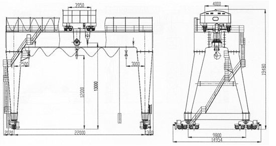 吊鉤雙梁門式起重機整機結(jié)構(gòu)圖