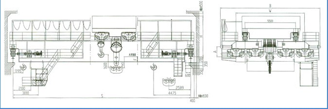 | QD型電動(dòng)雙梁吊鉤橋式起重機(jī)整機(jī)結(jié)構(gòu)圖 |